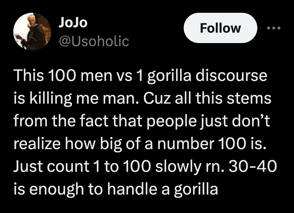 Prepare for the week ahead and take the edge off with some quality, light-hearted tweets and memes. There's a debate raging about humans versus one gorilla, people are dunking on the famous folks of the internet, and there's a new Chinese hairstyle that is any animal lovers dream.